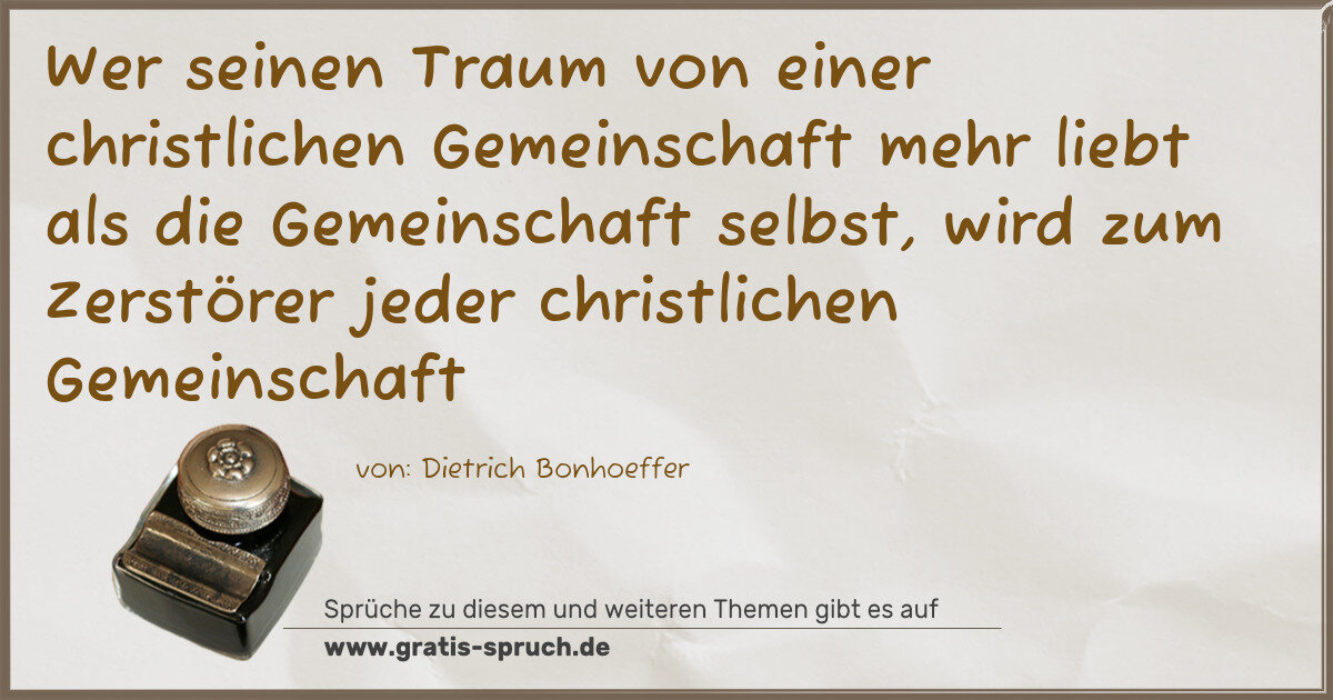Wer seinen Traum von einer christlichen Gemeinschaft mehr liebt als die Gemeinschaft selbst, wird zum Zerstörer jeder christlichen Gemeinschaft