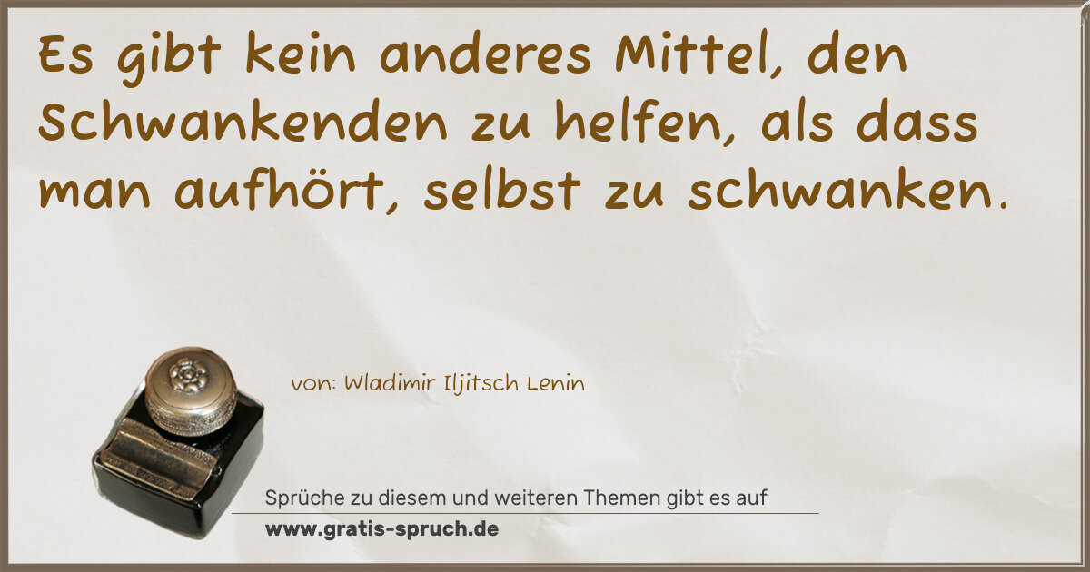 Es gibt kein anderes Mittel, den Schwankenden zu helfen, als dass man aufhört, selbst zu schwanken.