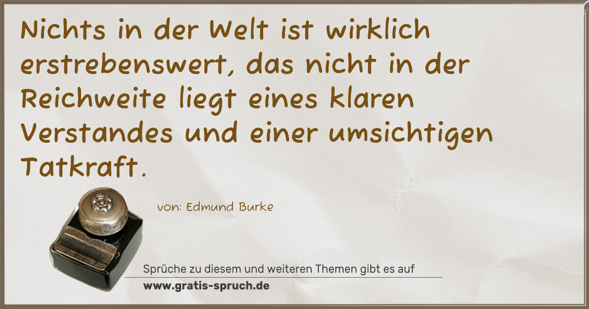 Nichts in der Welt ist wirklich erstrebenswert, das nicht in der Reichweite liegt eines klaren Verstandes und einer umsichtigen Tatkraft.