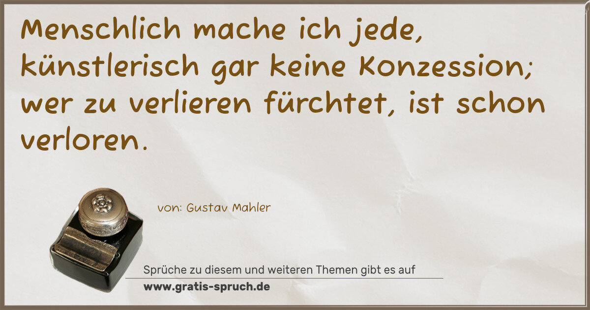Menschlich mache ich jede, künstlerisch gar keine Konzession; wer zu verlieren fürchtet, ist schon verloren.