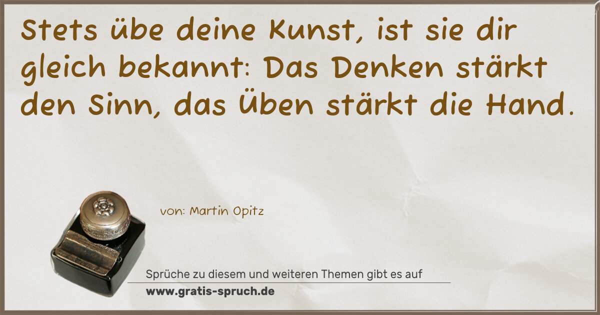 Stets übe deine Kunst, ist sie dir gleich bekannt: Das Denken stärkt den Sinn, das Üben stärkt die Hand.