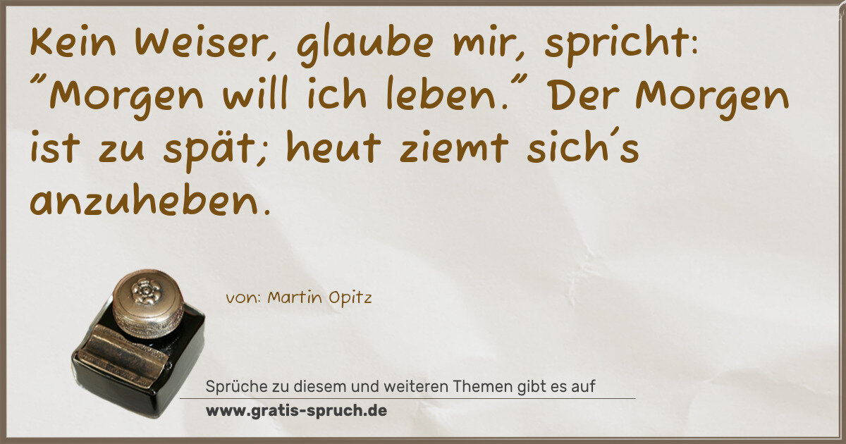 Kein Weiser, glaube mir, spricht: "Morgen will ich leben." Der Morgen ist zu spät; heut ziemt sich's anzuheben.