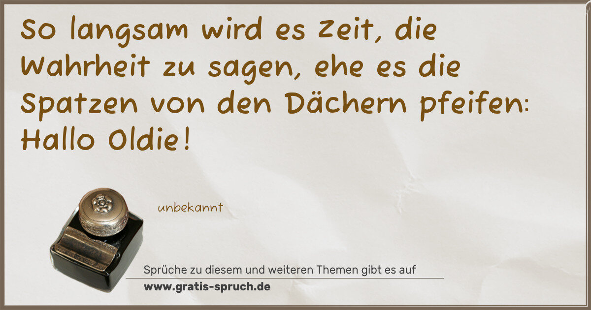 So langsam wird es Zeit, die Wahrheit zu sagen, ehe es die Spatzen von den Dächern pfeifen: Hallo Oldie!