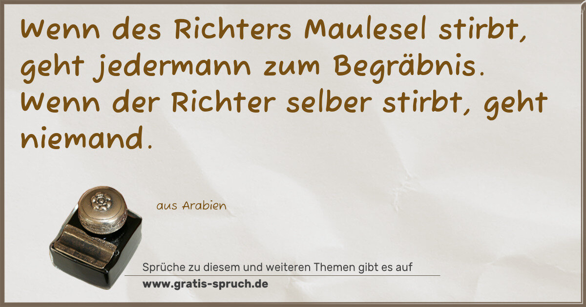 Wenn des Richters Maulesel stirbt, geht jedermann zum Begräbnis. Wenn der Richter selber stirbt, geht niemand.