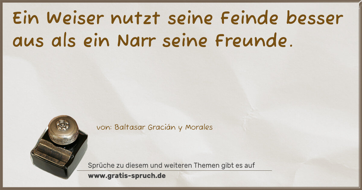 Ein Weiser nutzt seine Feinde besser aus als ein Narr seine Freunde.