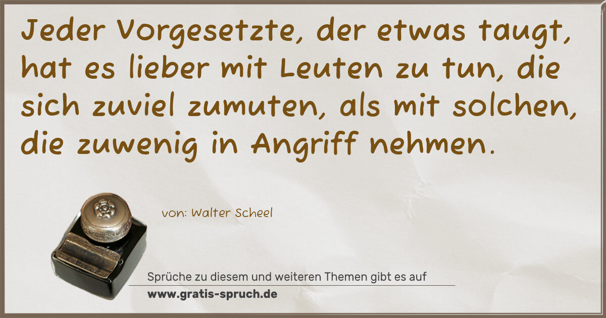 Jeder Vorgesetzte, der etwas taugt, hat es lieber mit Leuten zu tun, die sich zuviel zumuten, als mit solchen, die zuwenig in Angriff nehmen.