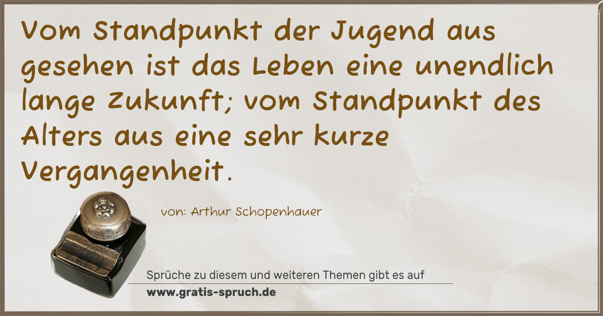 Vom Standpunkt der Jugend aus gesehen ist das Leben eine unendlich lange Zukunft; vom Standpunkt des Alters aus eine sehr kurze Vergangenheit.