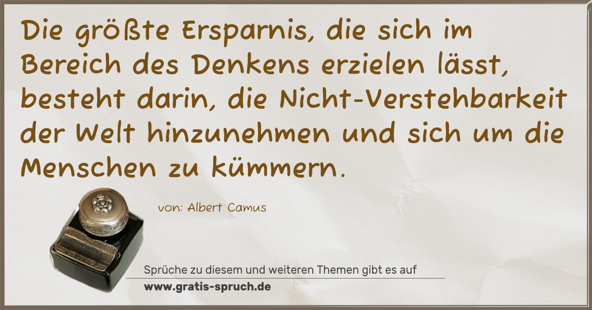 Die größte Ersparnis, die sich im Bereich des Denkens erzielen lässt, besteht darin, die Nicht-Verstehbarkeit der Welt hinzunehmen und sich um die Menschen zu kümmern.