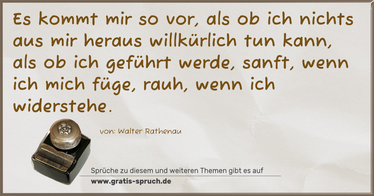 Es kommt mir so vor, als ob ich nichts aus mir heraus willkürlich tun kann, als ob ich geführt werde, sanft, wenn ich mich füge, rauh, wenn ich widerstehe.