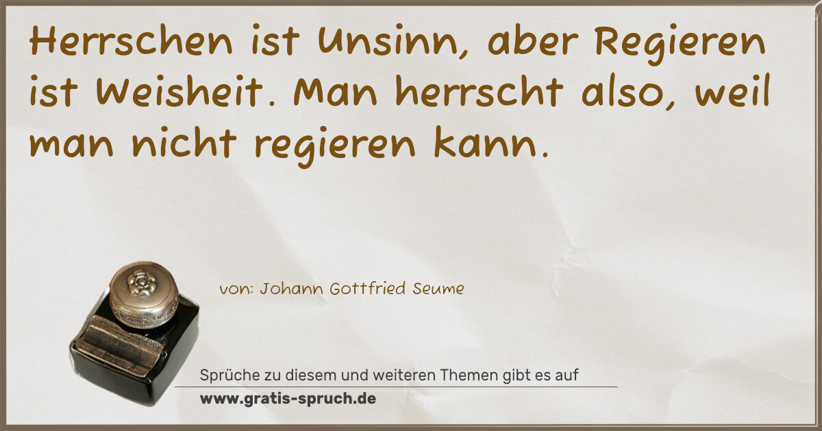 Herrschen ist Unsinn, aber Regieren ist Weisheit. Man herrscht also, weil man nicht regieren kann.