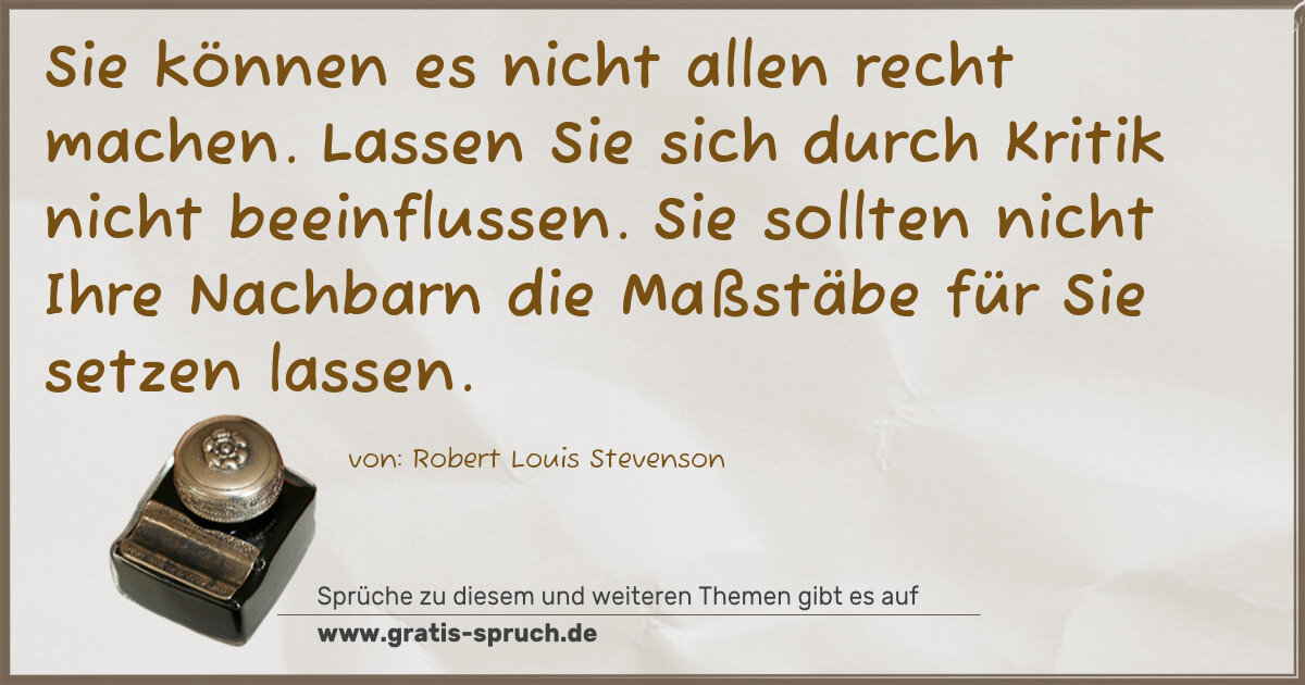 Sie können es nicht allen recht machen. Lassen Sie sich durch Kritik nicht beeinflussen. Sie sollten nicht Ihre Nachbarn die Maßstäbe für Sie setzen lassen.