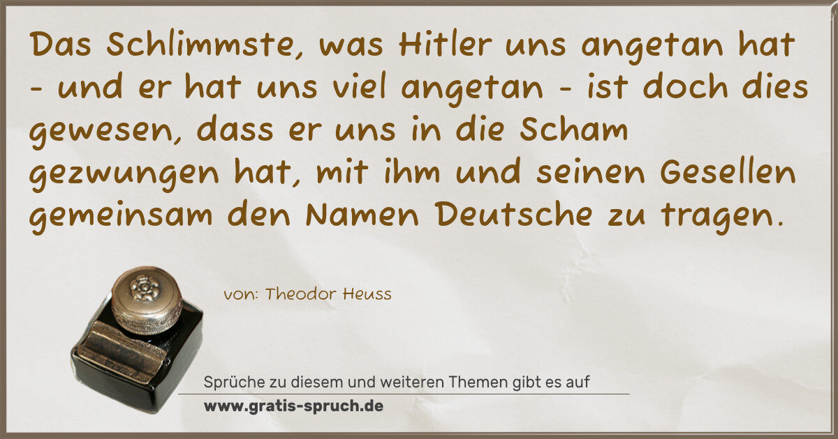 Das Schlimmste, was Hitler uns angetan hat - und er hat uns viel angetan - ist doch dies gewesen, dass er uns in die Scham gezwungen hat, mit ihm und seinen Gesellen gemeinsam den Namen Deutsche zu tragen.
