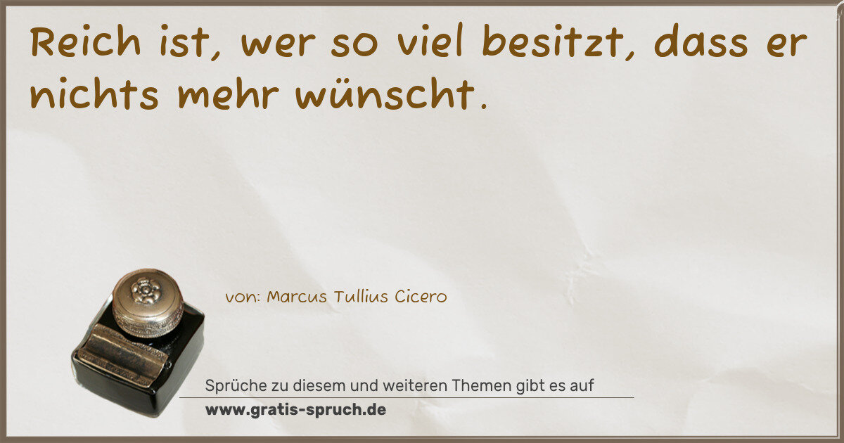 Reich ist, wer so viel besitzt, dass er nichts mehr wünscht.
