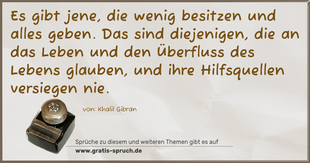 Es gibt jene, die wenig besitzen und alles geben. Das sind diejenigen, die an das Leben und den Überfluss des Lebens glauben, und ihre Hilfsquellen versiegen nie.