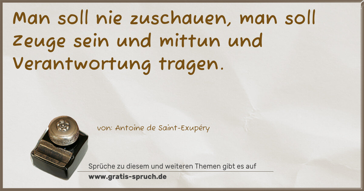 Man soll nie zuschauen, man soll Zeuge sein und mittun und Verantwortung tragen.