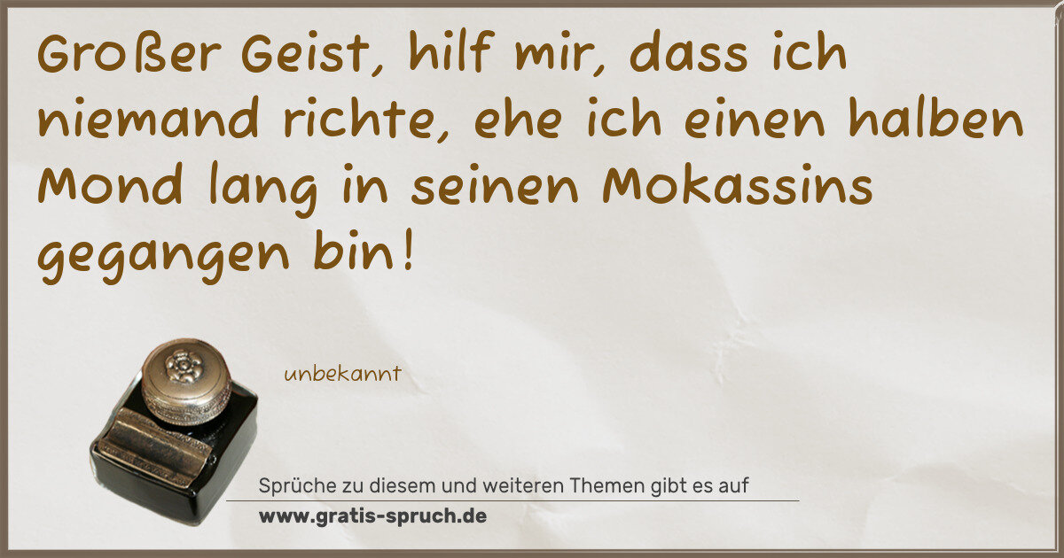 Großer Geist, hilf mir, dass ich niemand richte, ehe ich einen halben Mond lang in seinen Mokassins gegangen bin!