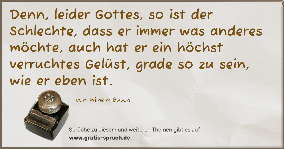 Denn, leider Gottes, so ist der Schlechte, dass er immer was anderes möchte, auch hat er ein höchst verruchtes Gelüst, grade so zu sein, wie er eben ist.