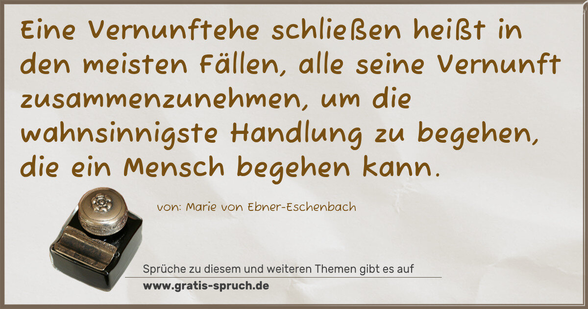 Eine Vernunftehe schließen heißt in den meisten Fällen, alle seine Vernunft zusammenzunehmen, um die wahnsinnigste Handlung zu begehen, die ein Mensch begehen kann.