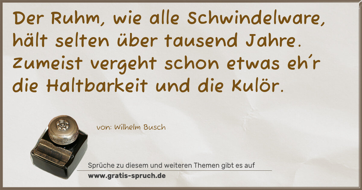 Der Ruhm, wie alle Schwindelware, hält selten über tausend Jahre. Zumeist vergeht schon etwas eh'r die Haltbarkeit und die Kulör.