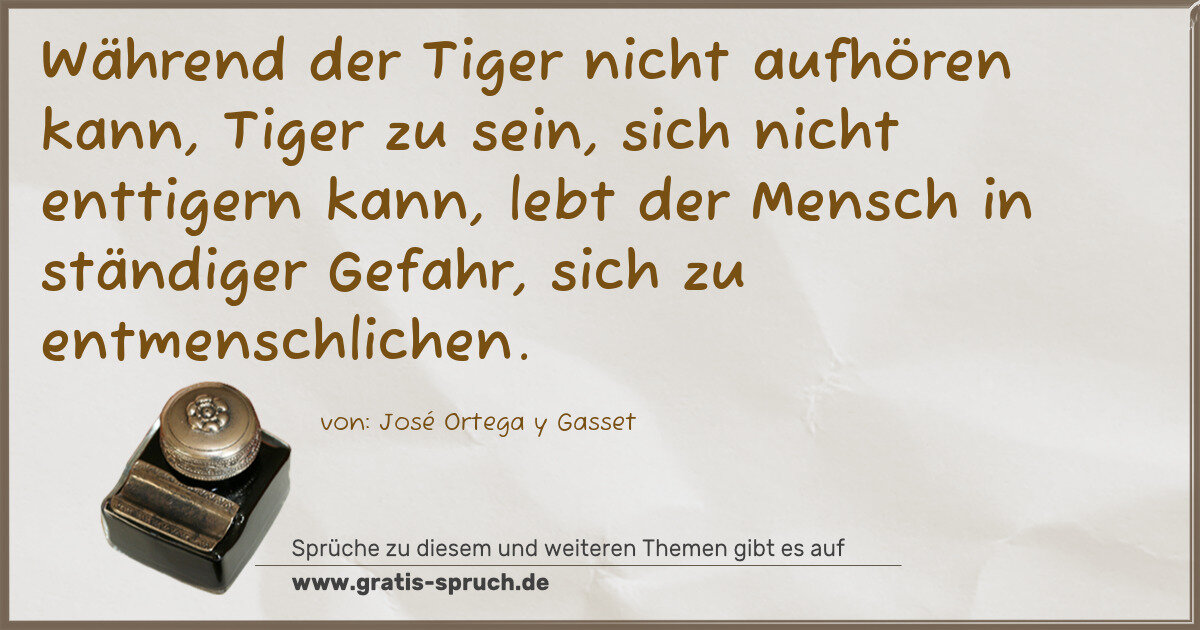 Während der Tiger nicht aufhören kann, Tiger zu sein, sich nicht enttigern kann, lebt der Mensch in ständiger Gefahr, sich zu entmenschlichen.