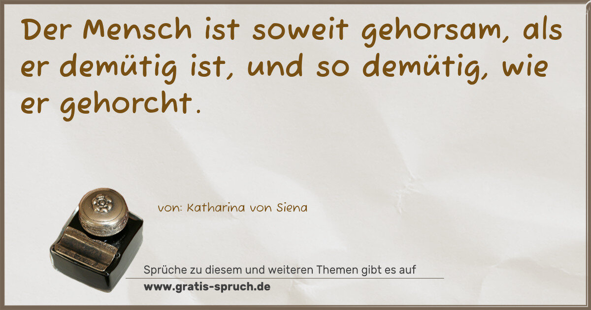 Der Mensch ist soweit gehorsam, als er demütig ist, und so demütig, wie er gehorcht.