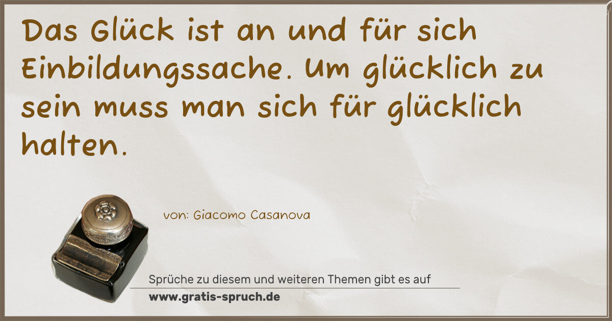 Das Glück ist an und für sich Einbildungssache. Um glücklich zu sein muss man sich für glücklich halten.