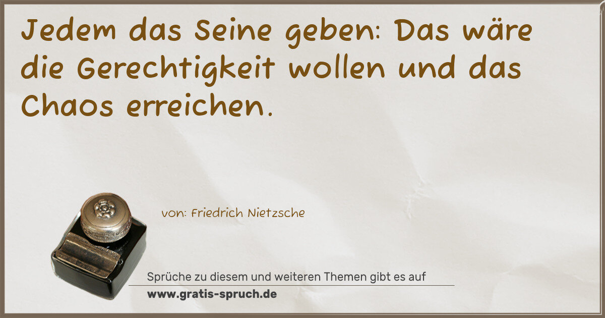 Jedem das Seine geben: Das wäre die Gerechtigkeit wollen und das Chaos erreichen.