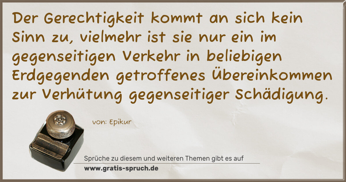 Der Gerechtigkeit kommt an sich kein Sinn zu, vielmehr ist sie nur ein im gegenseitigen Verkehr in beliebigen Erdgegenden getroffenes Übereinkommen zur Verhütung gegenseitiger Schädigung.