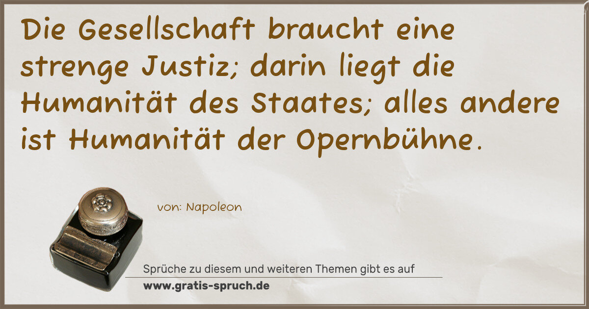 Die Gesellschaft braucht eine strenge Justiz; darin liegt die Humanität des Staates; alles andere ist Humanität der Opernbühne.
