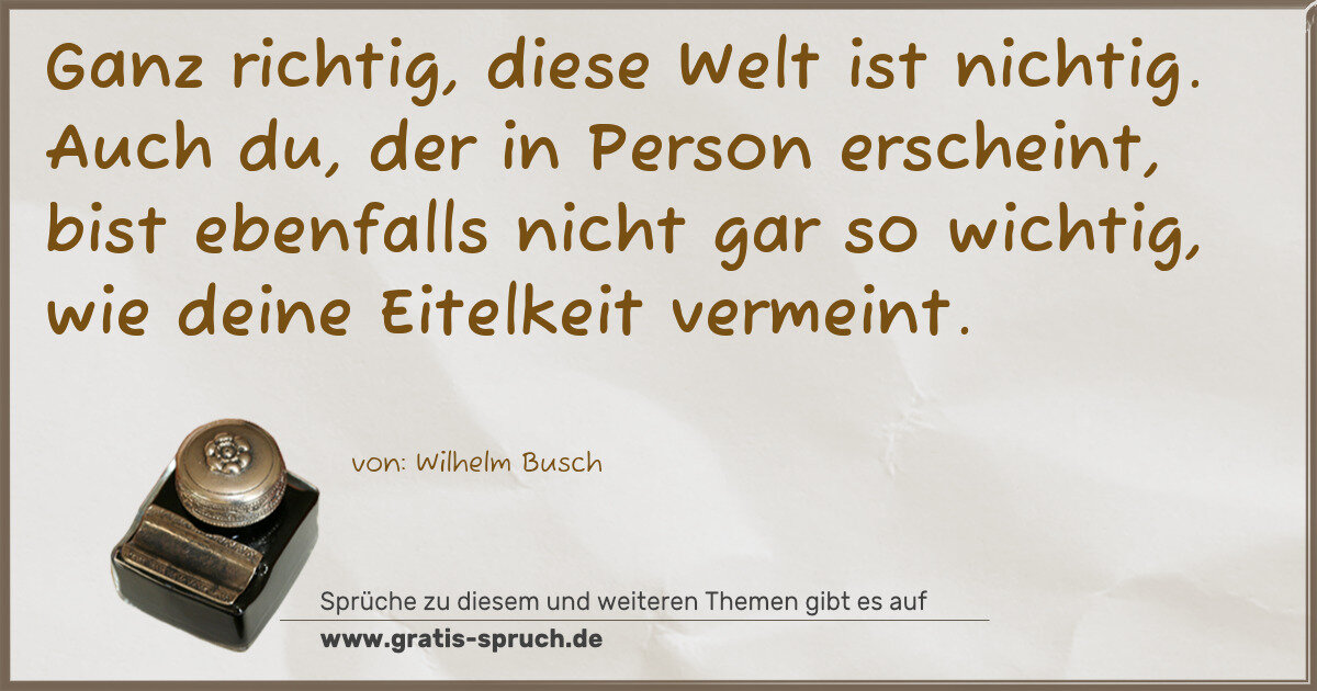 Ganz richtig, diese Welt ist nichtig. Auch du, der in Person erscheint, bist ebenfalls nicht gar so wichtig, wie deine Eitelkeit vermeint.