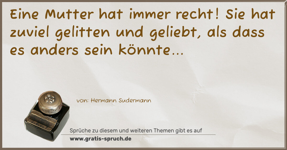 Eine Mutter hat immer recht! Sie hat zuviel gelitten und geliebt, als dass es anders sein könnte...