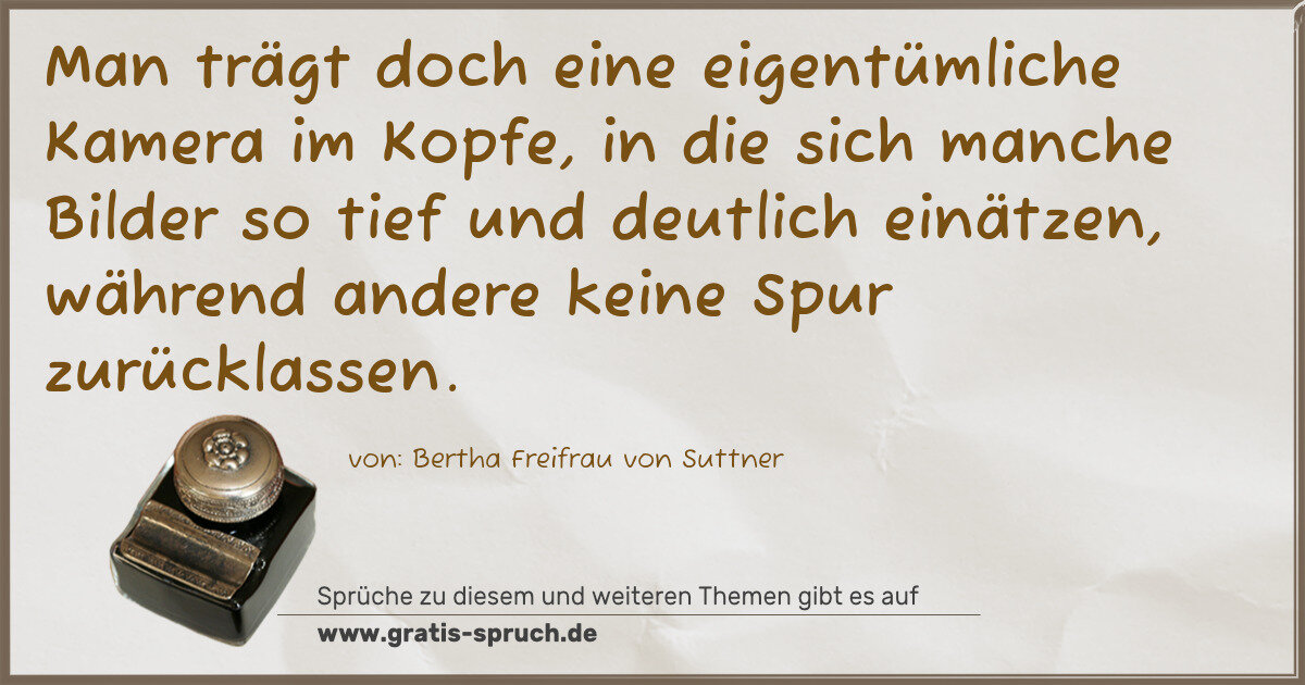 Man trägt doch eine eigentümliche Kamera im Kopfe, in die sich manche Bilder so tief und deutlich einätzen, während andere keine Spur zurücklassen.