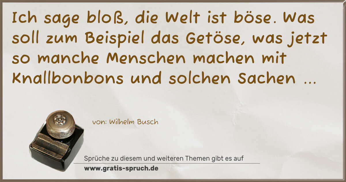 Ich sage bloß, die Welt ist böse. Was soll zum Beispiel das Getöse, was jetzt so manche Menschen machen mit Knallbonbons und solchen Sachen ...