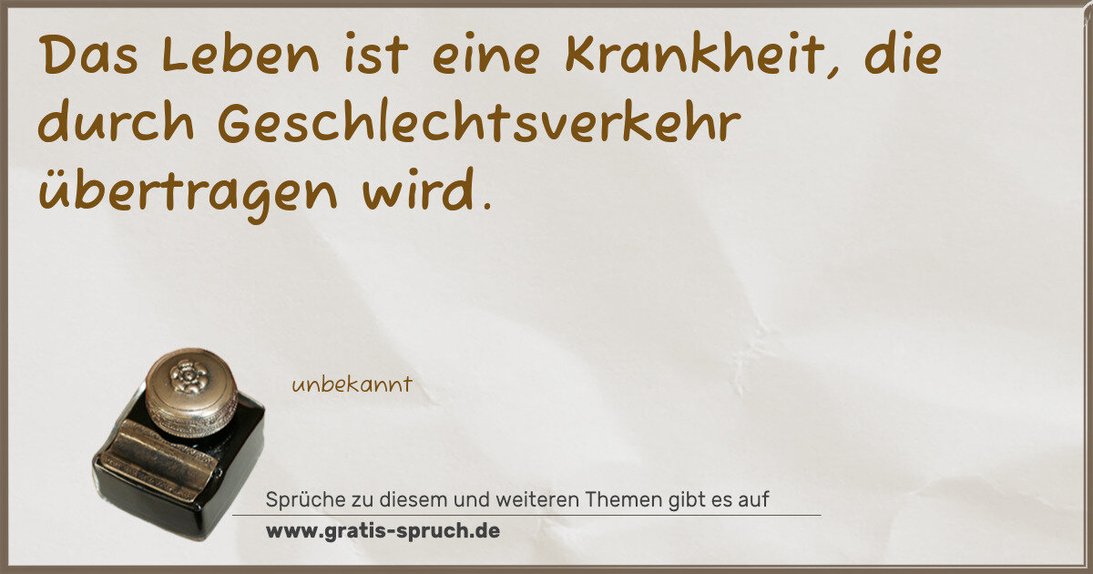 Das Leben ist eine Krankheit, die durch Geschlechtsverkehr übertragen wird.