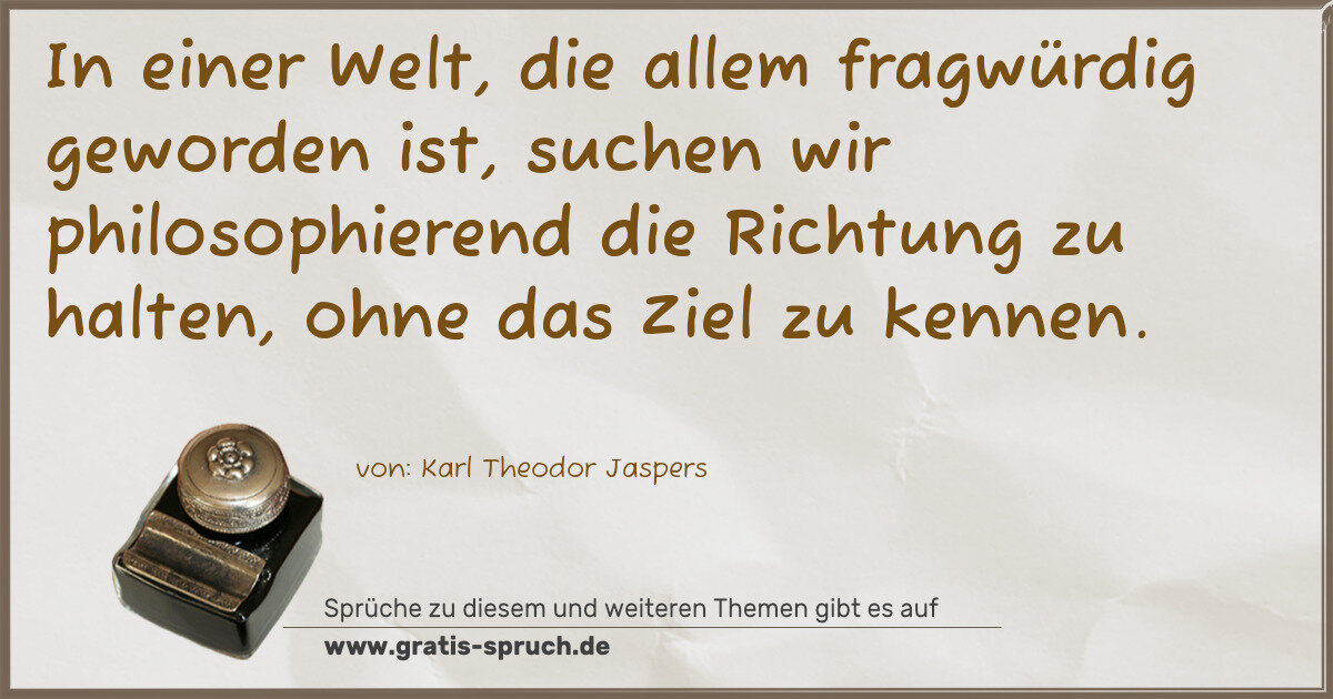 In einer Welt, die allem fragwürdig geworden ist, suchen wir philosophierend die Richtung zu halten, ohne das Ziel zu kennen.