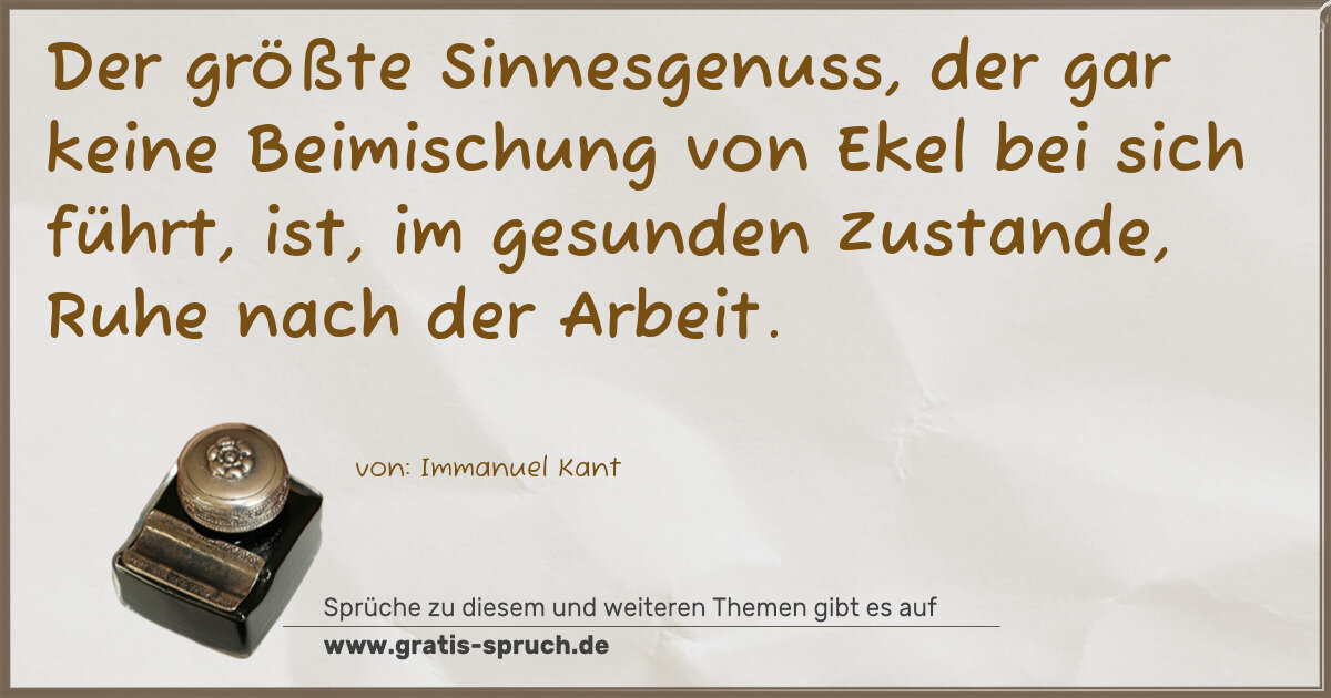 Der größte Sinnesgenuss, der gar keine Beimischung von Ekel bei sich führt, ist, im gesunden Zustande, Ruhe nach der Arbeit.