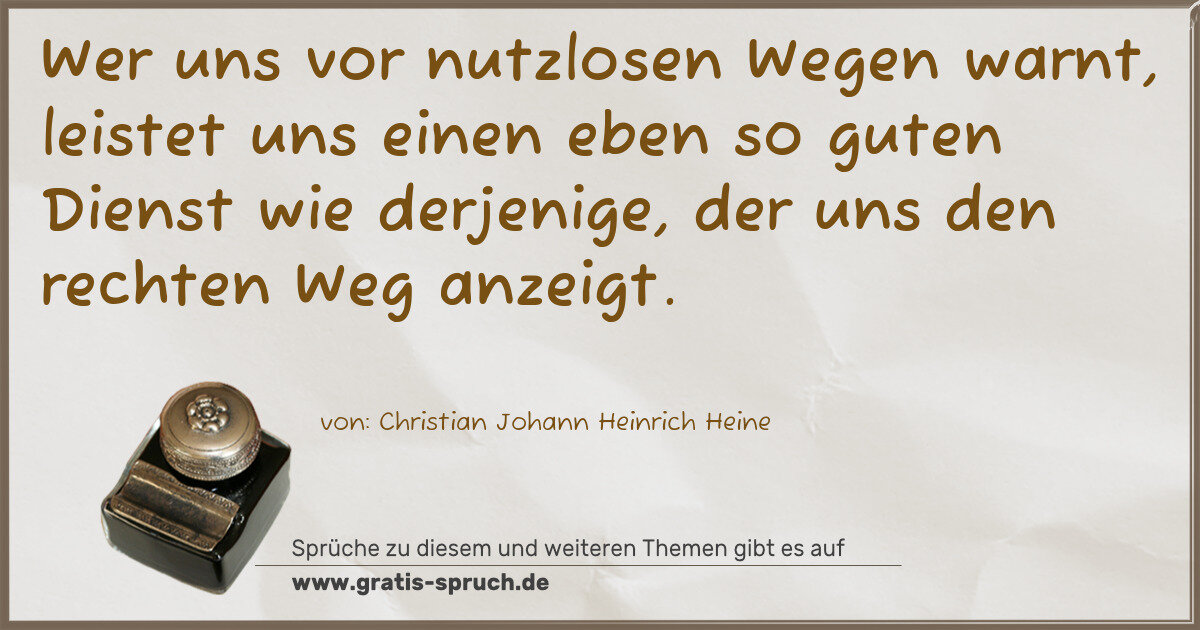 Wer uns vor nutzlosen Wegen warnt, leistet uns einen eben so guten Dienst wie derjenige, der uns den rechten Weg anzeigt.