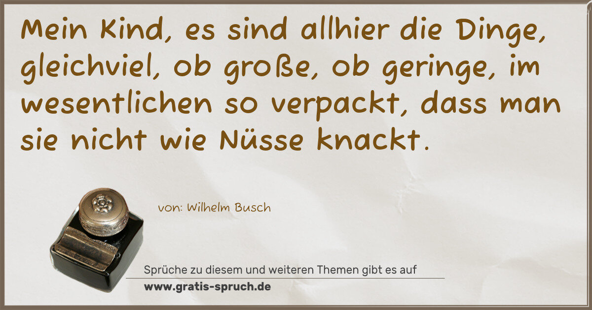 Mein Kind, es sind allhier die Dinge, gleichviel, ob große, ob geringe, im wesentlichen so verpackt, dass man sie nicht wie Nüsse knackt.
