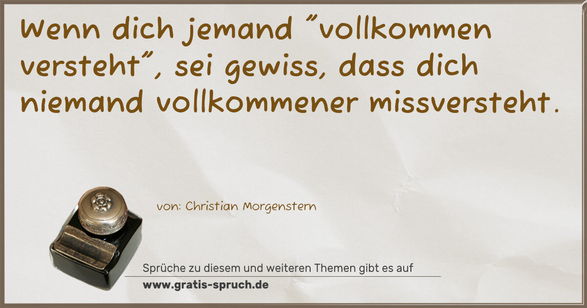 Wenn dich jemand "vollkommen versteht", sei gewiss, dass dich niemand vollkommener missversteht.