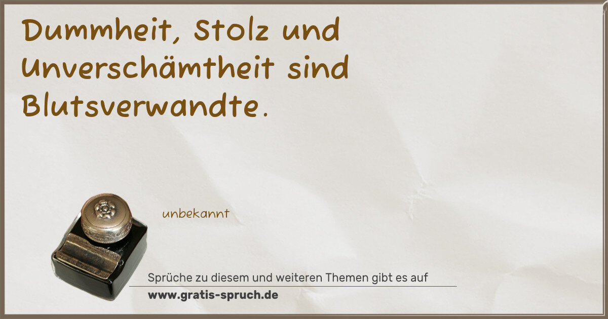 Dummheit, Stolz und Unverschämtheit sind Blutsverwandte.