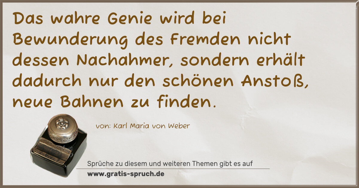 Das wahre Genie wird bei Bewunderung des Fremden nicht dessen Nachahmer, sondern erhält dadurch nur den schönen Anstoß, neue Bahnen zu finden.