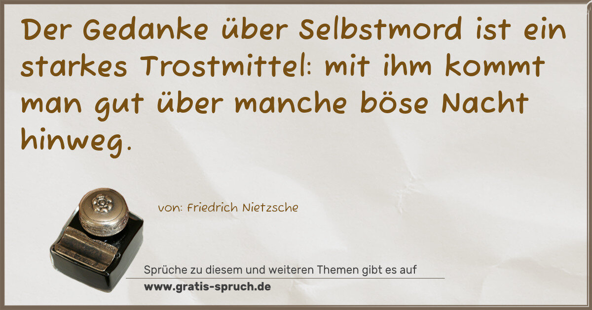 Der Gedanke über Selbstmord ist ein starkes Trostmittel: mit ihm kommt man gut über manche böse Nacht hinweg.
