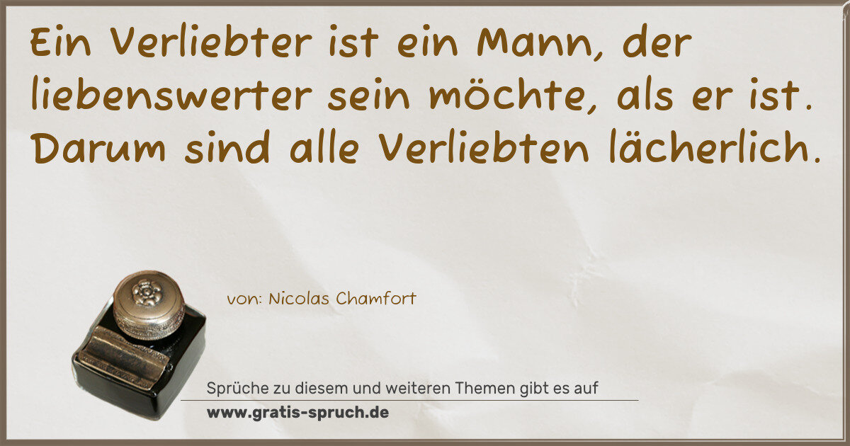 Ein Verliebter ist ein Mann, der liebenswerter sein möchte, als er ist. Darum sind alle Verliebten lächerlich.