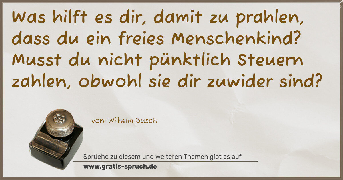 Was hilft es dir, damit zu prahlen, dass du ein freies Menschenkind? Musst du nicht pünktlich Steuern zahlen, obwohl sie dir zuwider sind?