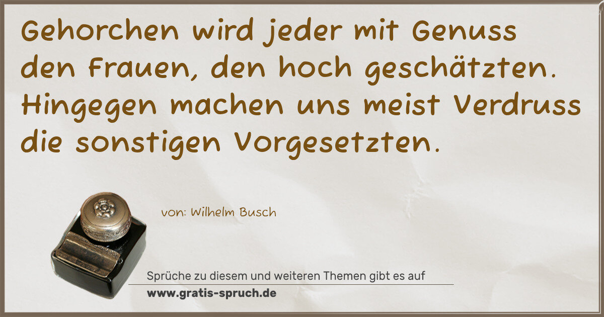 Gehorchen wird jeder mit Genuss den Frauen, den hoch geschätzten. Hingegen machen uns meist Verdruss die sonstigen Vorgesetzten.