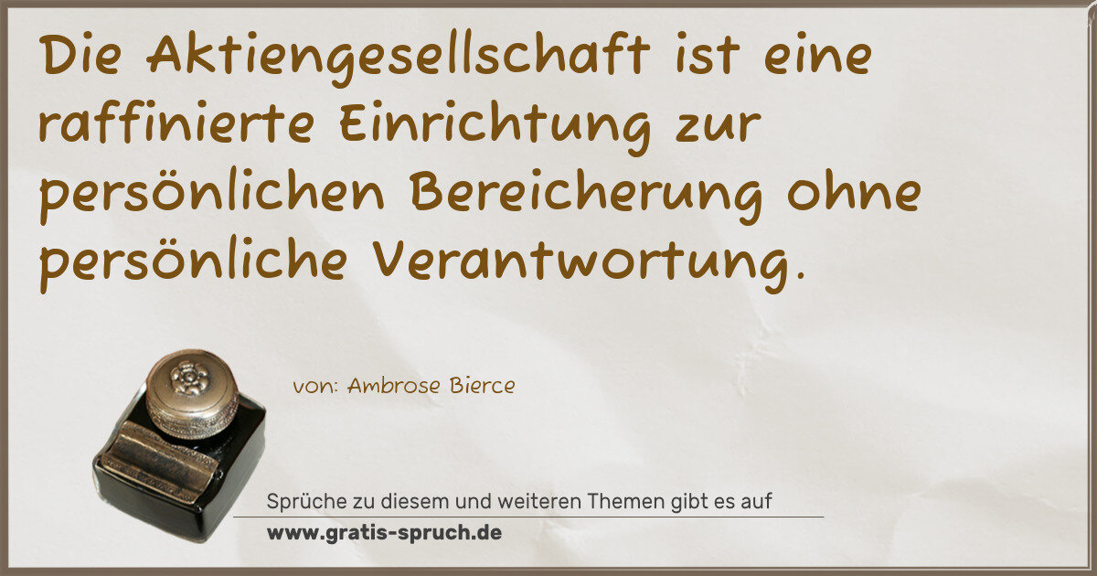 Die Aktiengesellschaft ist eine raffinierte Einrichtung zur persönlichen Bereicherung ohne persönliche Verantwortung.