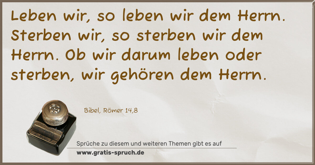 Leben wir, so leben wir dem Herrn. Sterben wir, so sterben wir dem Herrn. Ob wir darum leben oder sterben, wir gehören dem Herrn.