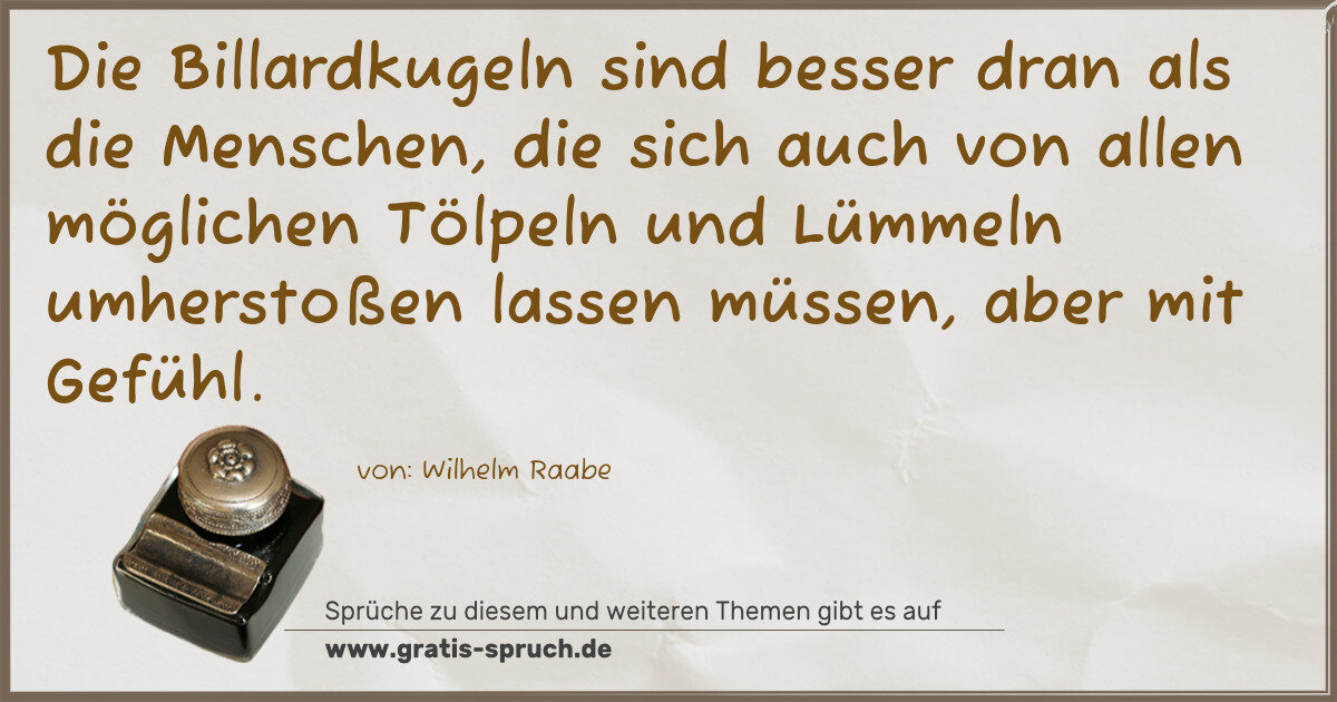 Die Billardkugeln sind besser dran als die Menschen, die sich auch von allen möglichen Tölpeln und Lümmeln umherstoßen lassen müssen, aber mit Gefühl.