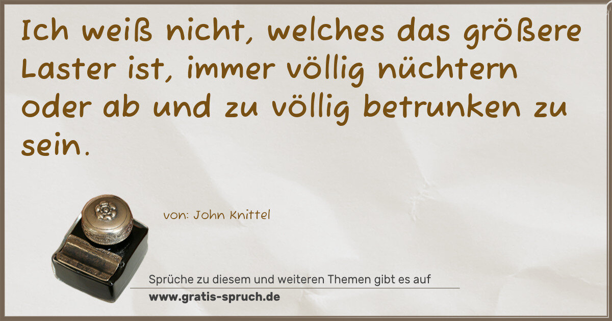 Ich weiß nicht, welches das größere Laster ist, immer völlig nüchtern oder ab und zu völlig betrunken zu sein.