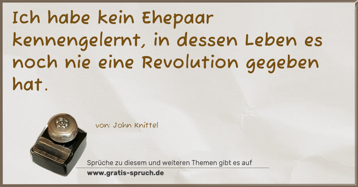 Ich habe kein Ehepaar kennengelernt, in dessen Leben es noch nie eine Revolution gegeben hat.